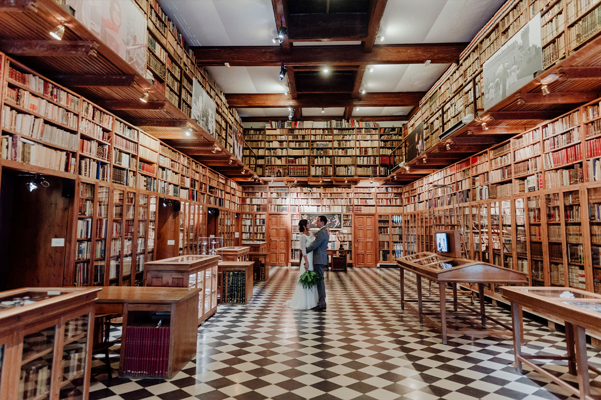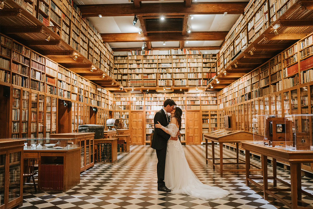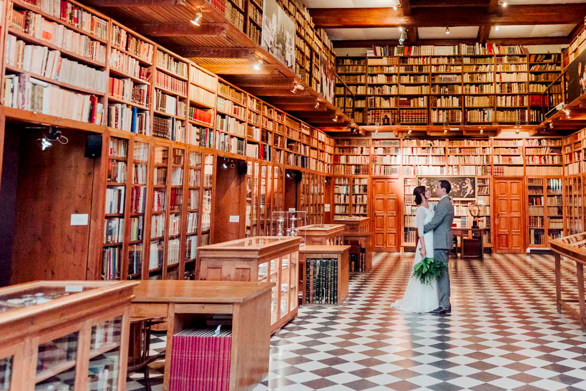 La biblioteca del Castillo de Peralada es un espacio muy especial, un lugar cálido y lleno de historia ideal para tu ceremonia civil íntima.