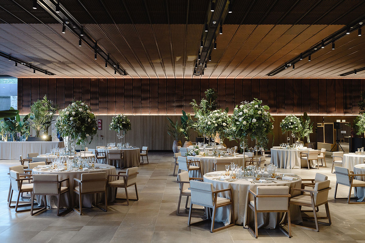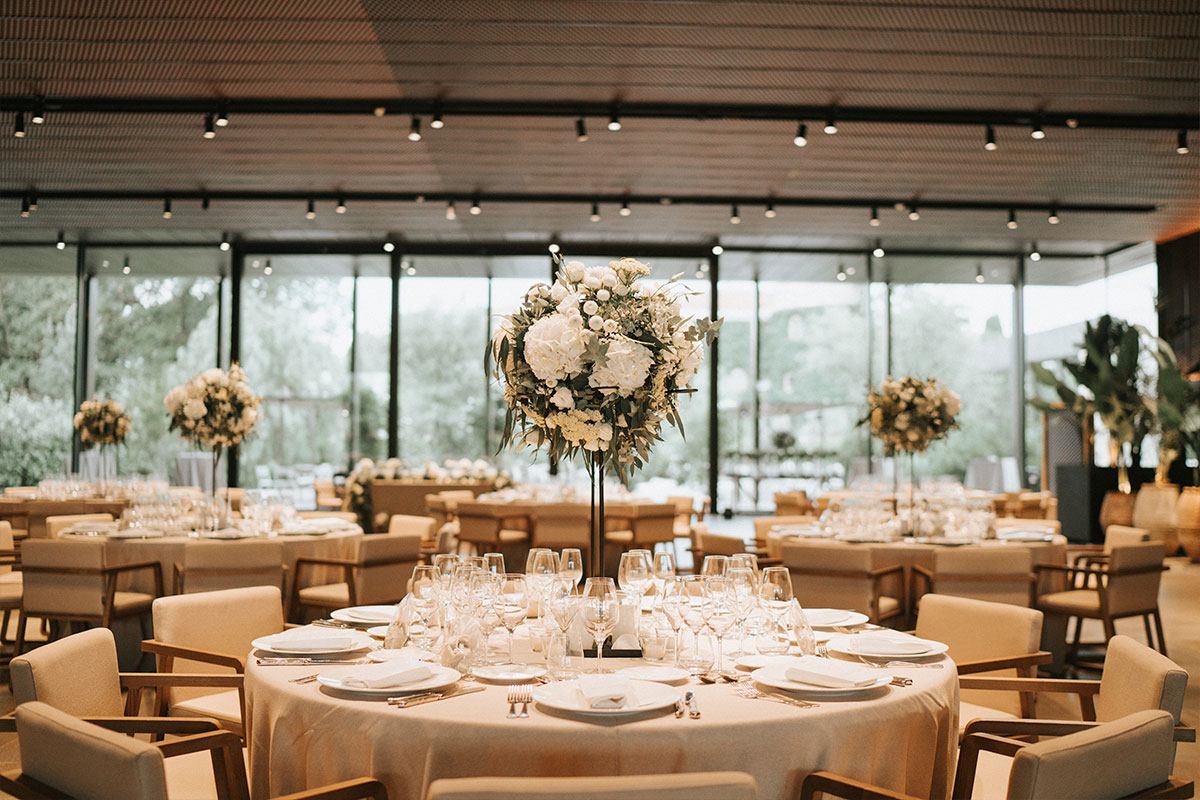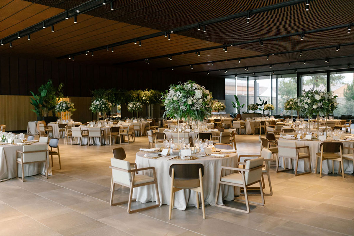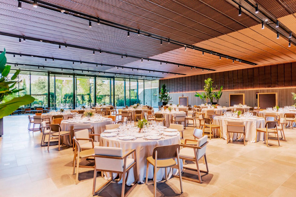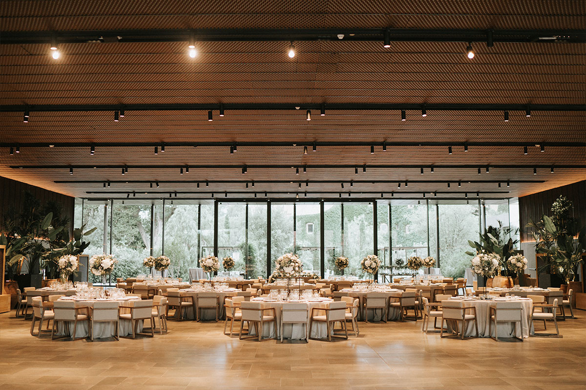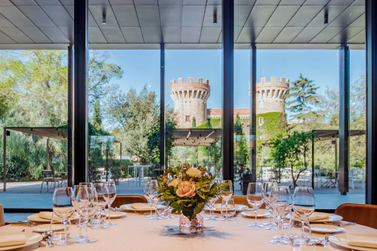 Este privilegiado salón con vistas impresionantes al Castillo Perelada, se ha diseñado con sofisticación para albergar celebraciones de ensueño. Grandes ventanales permiten la entrada de luz natural, creando una atmósfera luminosa y romántica.